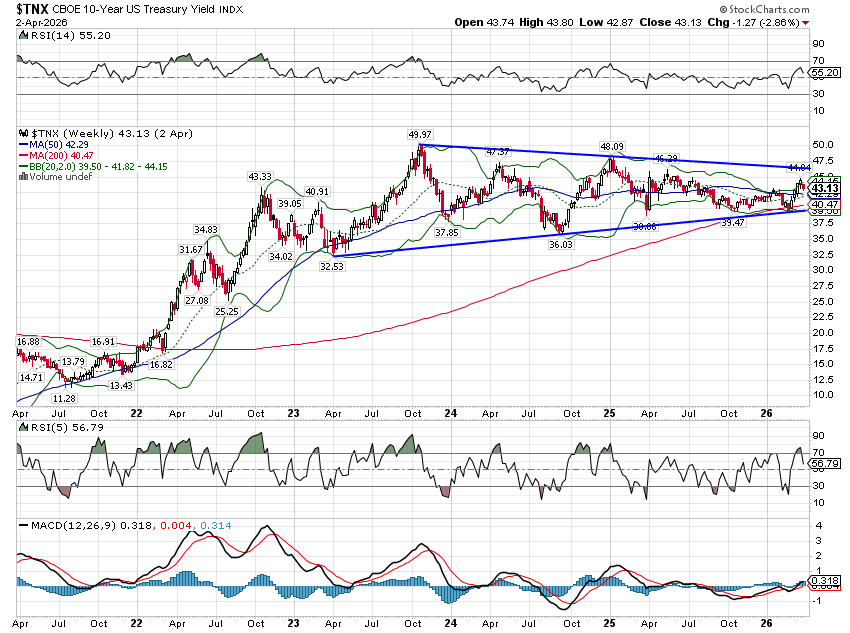 Rather than focus on the Iran war, which is entirely unpredictable, stock market investors should focus on the first chart in this post, the 10 year Treasury yield. It will eventually break out of the range it has been in for the last three years. Which way it goes will likely determine the path of the stock market. Based on history I’d be more concerned if rates break higher, no matter the cause.