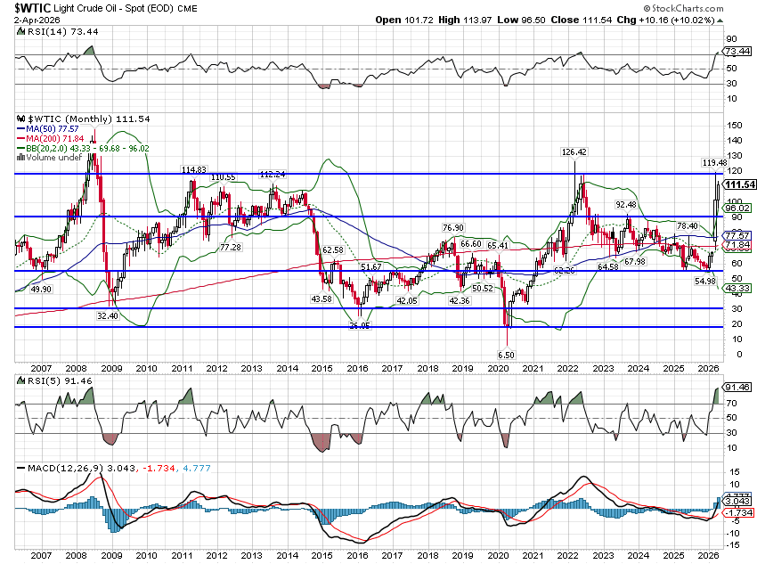 And that brings us to geopolitics, the price of oil and how the recent rise might impact the economy. Over the period from 2022 to today, crude oil prices have ranged from a high of $120 in the wake of Russia’s invasion of Ukraine to a low of $55 a few months ago and back to Friday’s close of $111. Going back further, oil prices have ranged from the peak in the summer of 2008 over $140 to a low that was briefly negative during the COVID economic shutdown. Oil price spikes have often preceded recessions in the past so the spike after Russia invaded Ukraine and the spike now have produced a lot of angst. But with the US now the largest producer of crude oil in the world – almost 14 mb/d today versus 5 mb/d at the nadir in 2008 – a high price doesn’t have the same effect it did in the past.
